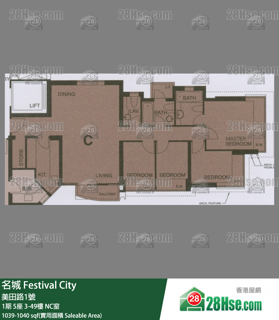 1,040 平方呎