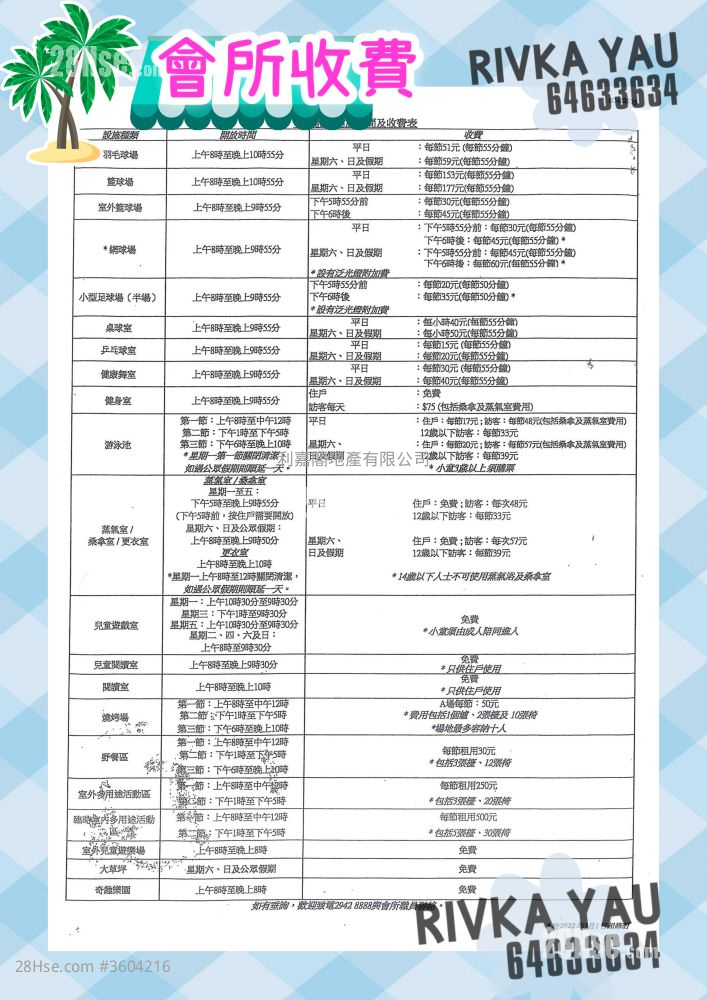 *以上價錢只供參考