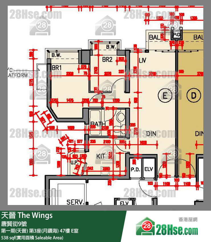 538 平方呎