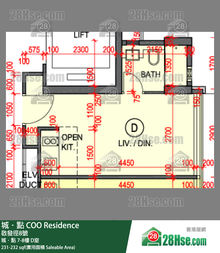 232 平方呎