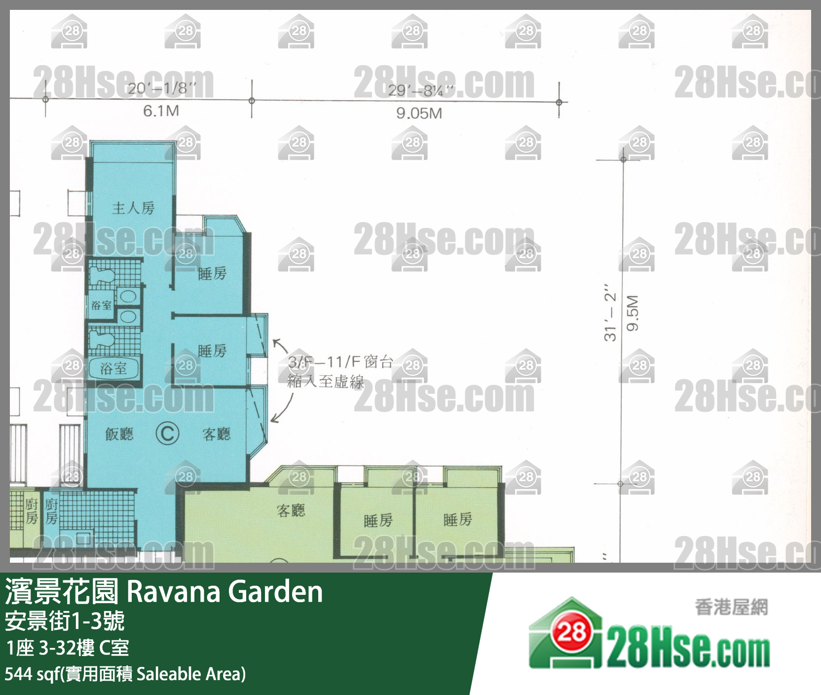 544 平方尺