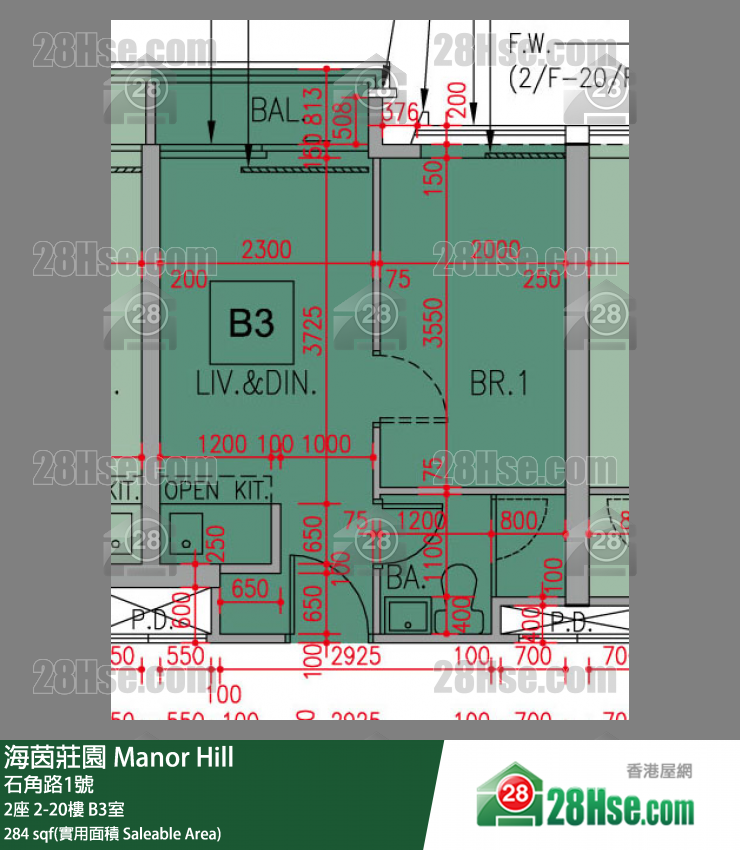 284 平方尺