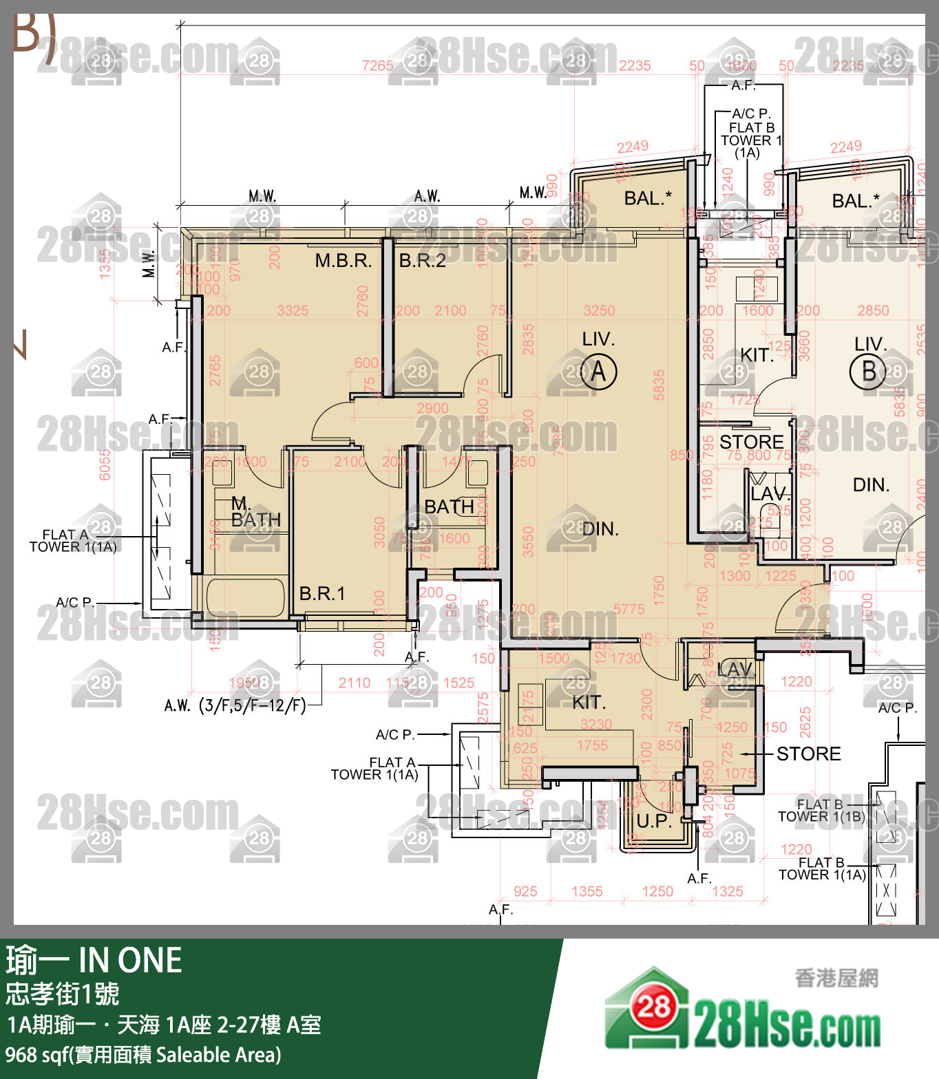 968 平方尺