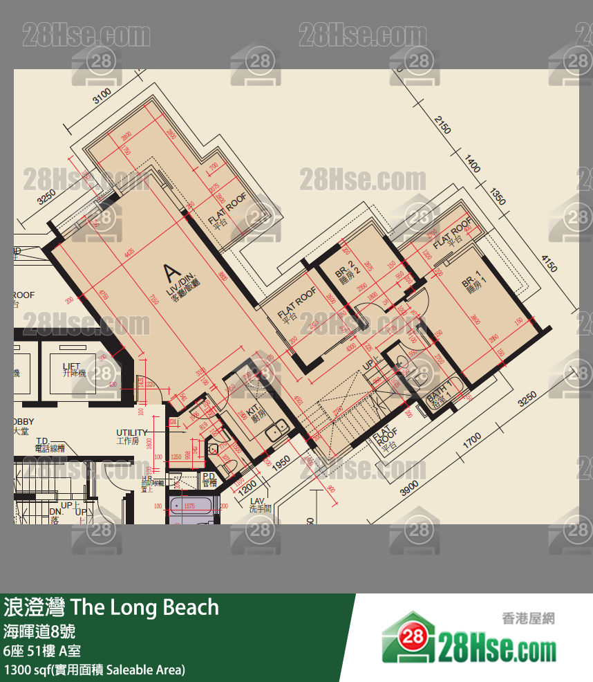 1,300 平方尺