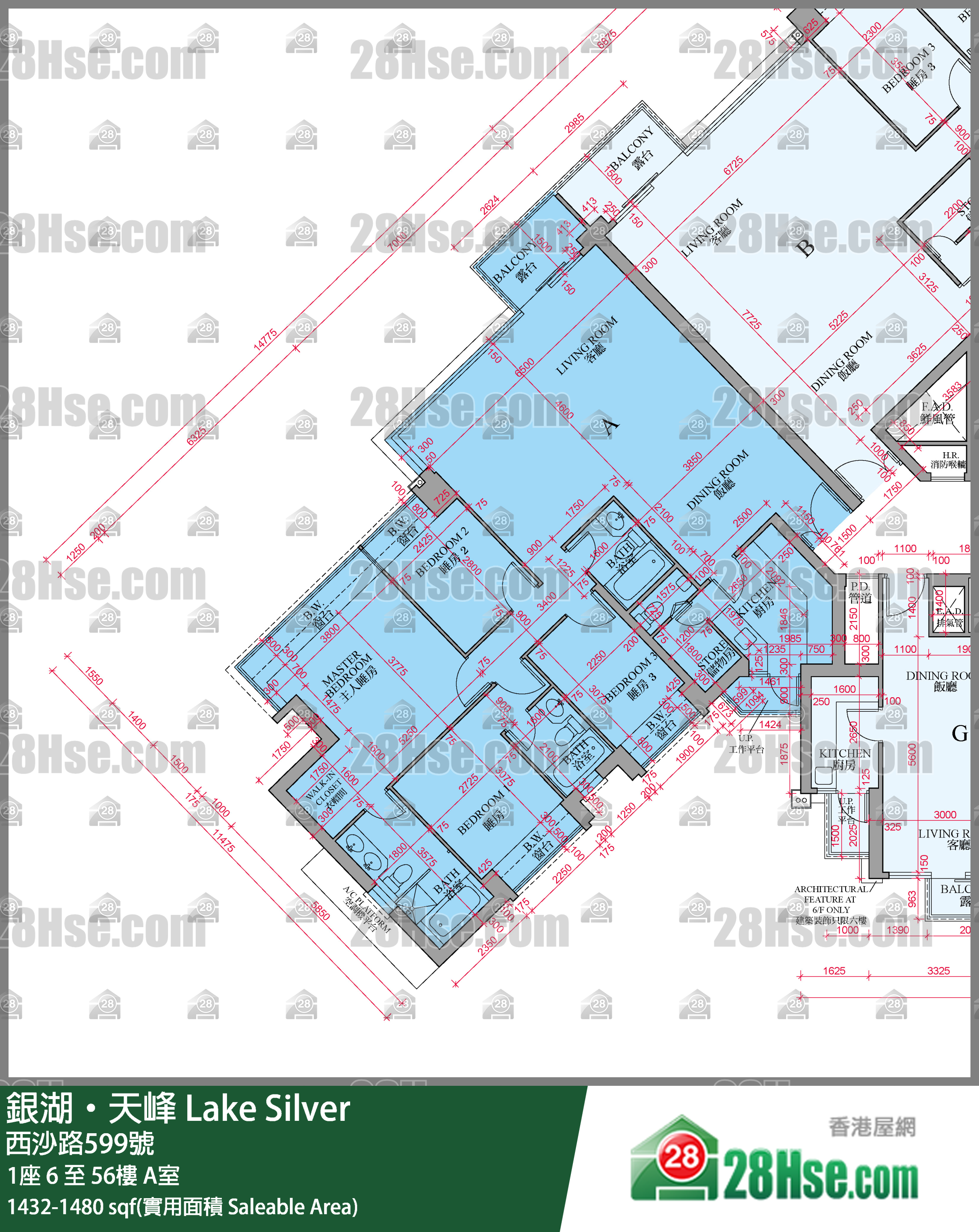 1,432 平方尺
