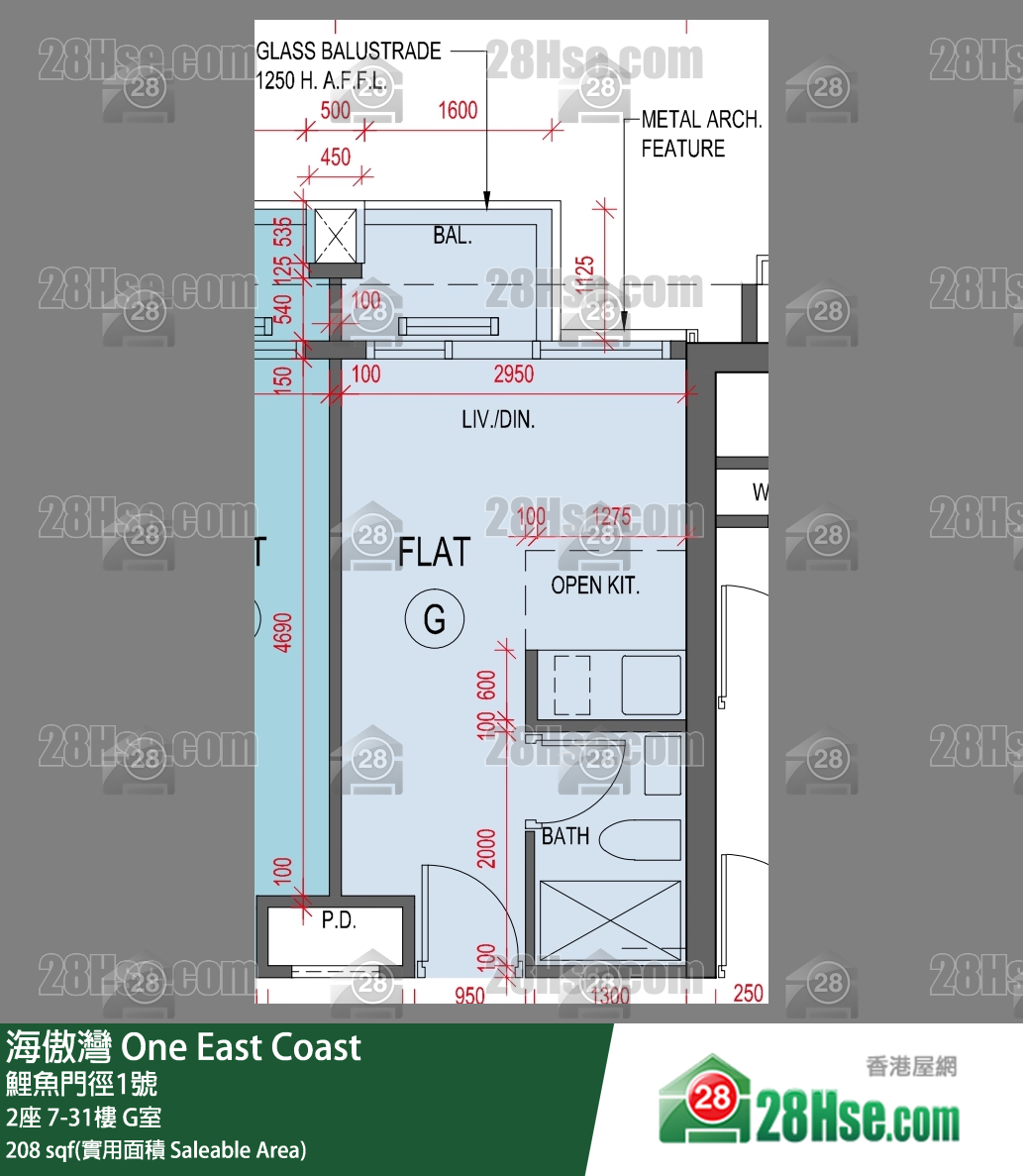208 平方尺