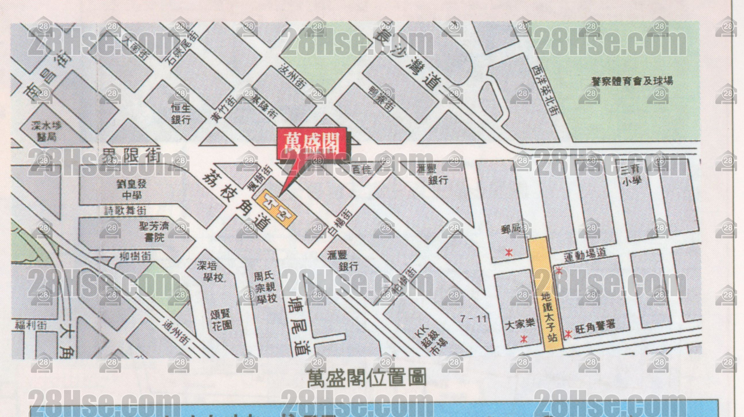 万盛阁 位于九龙 太子 荔枝角道168号,于1994年9月开始落成,由2座楼宇组成,共有104个单位。实用面积为322至442平方尺;交通便利,步行至港铁时间约5分钟,小学校网在32区,中学校区在油尖旺。