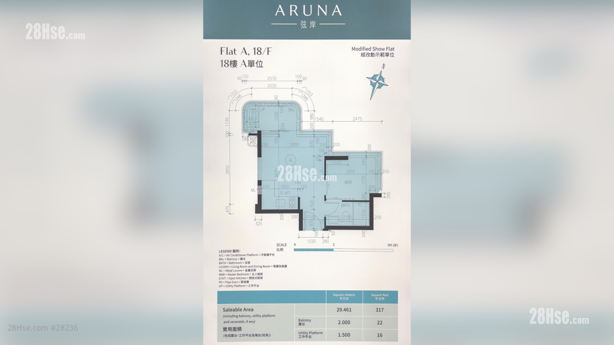 弦岸属单幢式项目,提供105伙,实用面积205至317平方尺,包括20伙开放式及77伙一房间隔,另设8伙特色户。