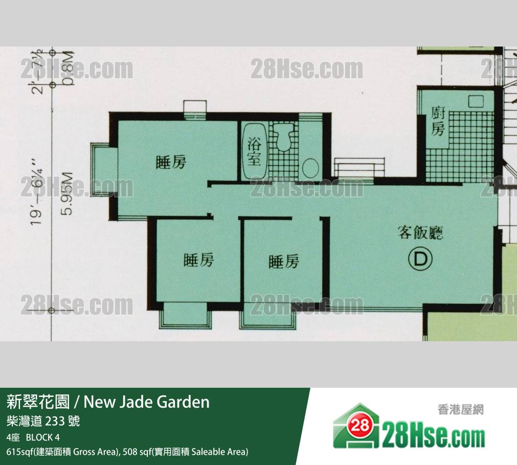 新翠花园 4座15楼 D室