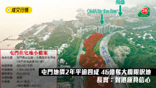 翻查资料,屯门区内对上一幅批出地皮,为佳兆业于2020年1月以35亿元投得之屯门第48区青山公路-青山湾段,可建楼面58.28万方尺,涉及35亿元,每尺楼面地价6,005元。由此可见,两年多以来区内地价缩水41.3%。值得留意的是,2021年底,传佳兆业以37.7亿元将地皮转手予「玩具大王」蔡志明家族,每尺楼面地价为6,468元。
