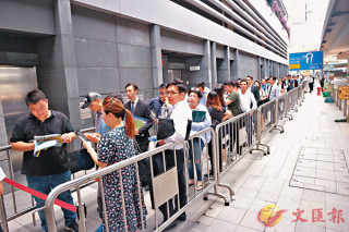 汇玺III昨以折实平均尺价2.46万元推售次轮352伙,包括开放式至四房户,早上9时20分大手客A组报到,散客B组则于早上10时15分开始报到。记者昨早10时于九龙站环球贸易广场3楼报到处所见,由于今次B组报到时段再无如首轮分开B1及B2组,令到场人数比上周更多,人龙一度由环球贸易广场3楼一直绕过天际100售票大堂再排至环球贸易广场外面街道。现场所见,大手客时段亦有不少操普通话的准买家到场拣楼,散客B组时段则有不少年轻客。