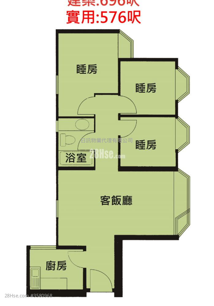 696 平方尺