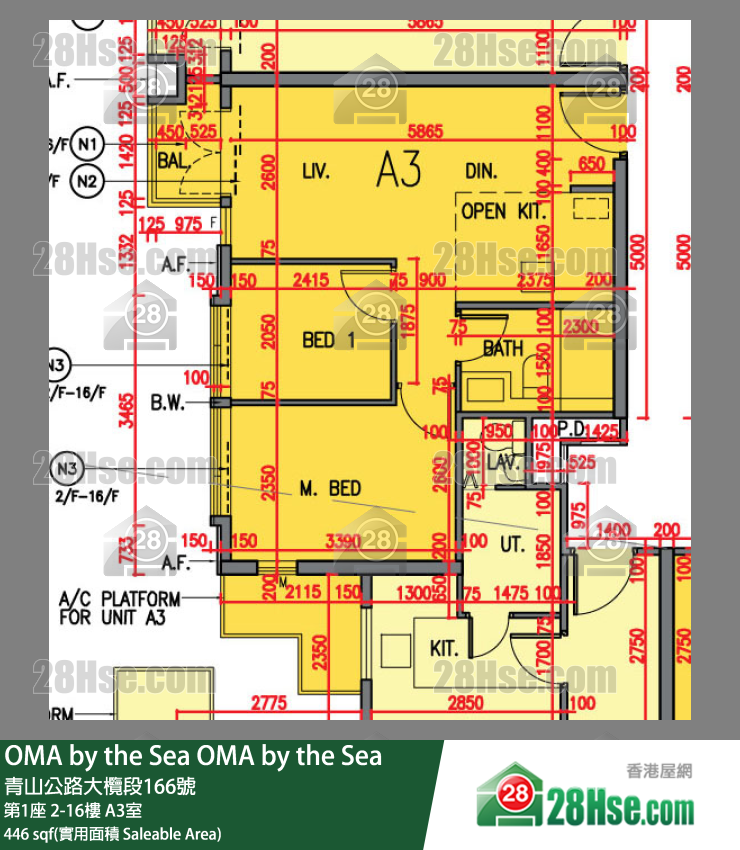 446 ft²