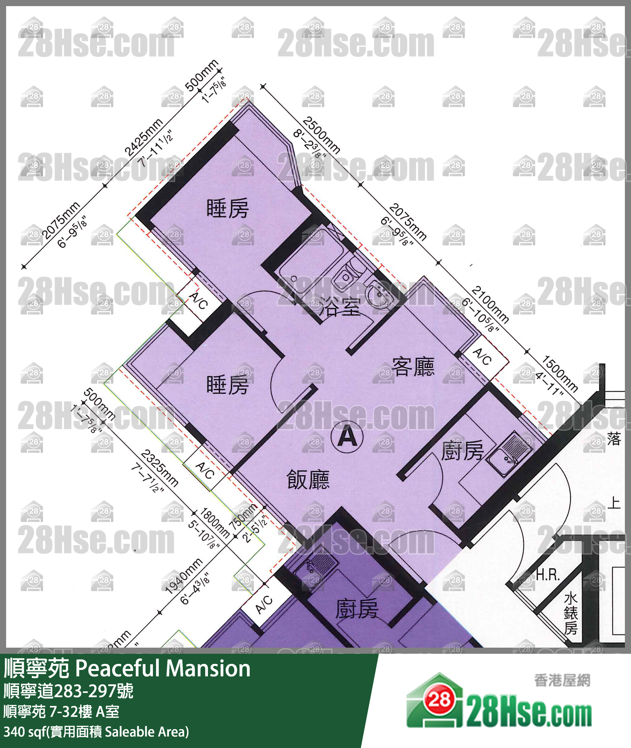 340 ft²