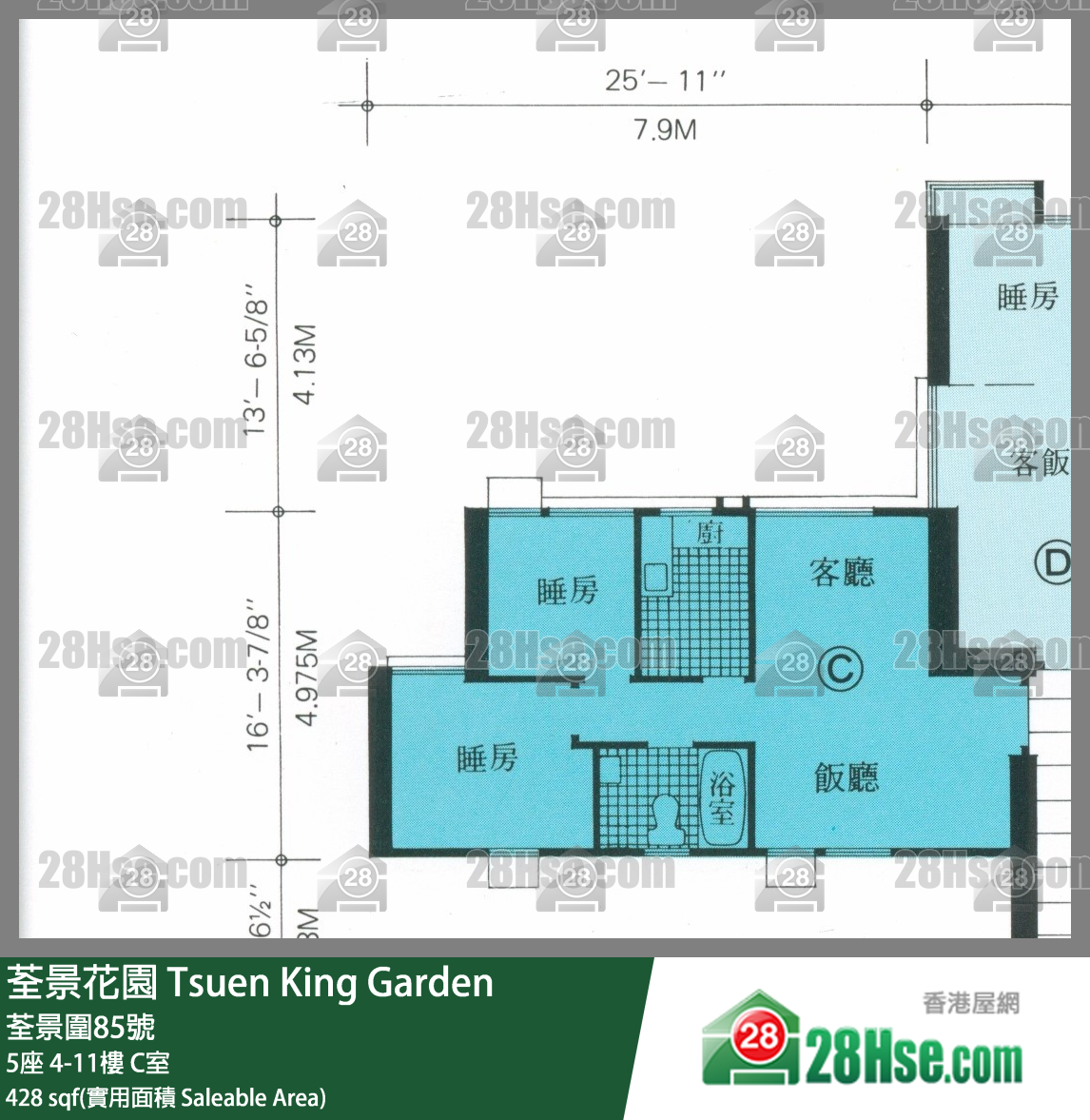428 ft²