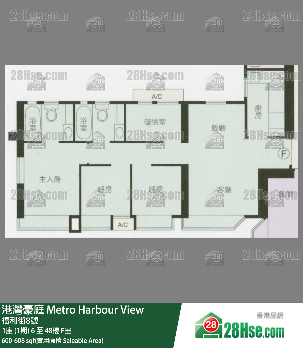 608 ft²