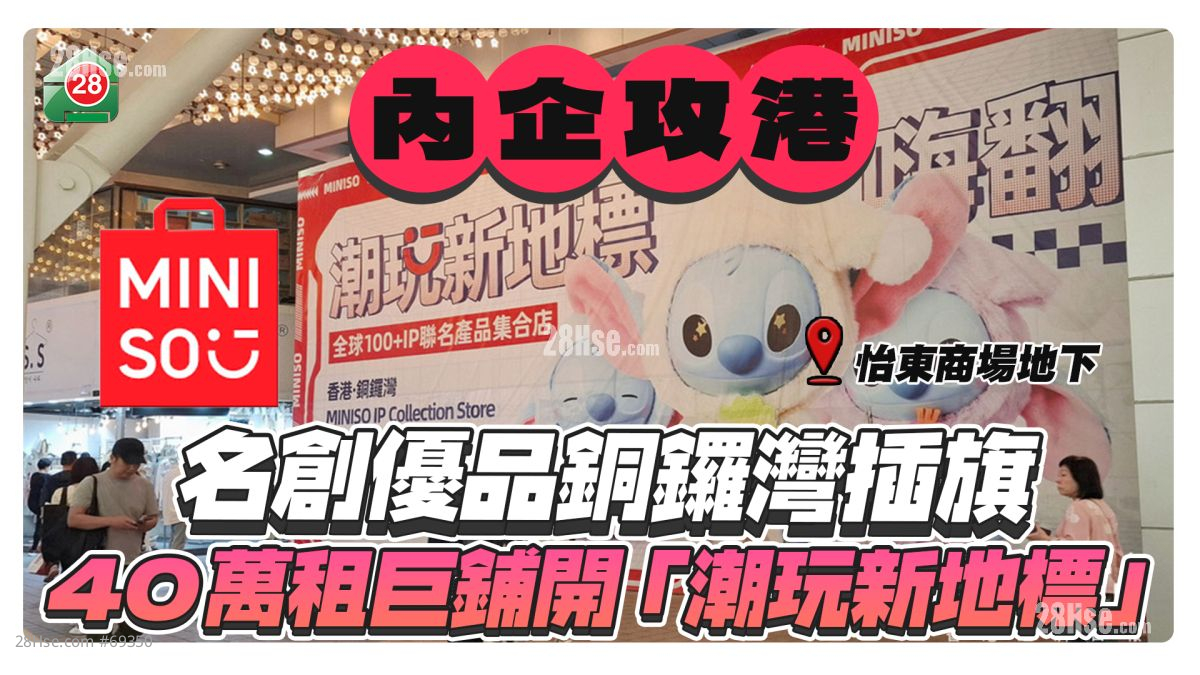 內地零售品牌名創優品MINISO近年積極擴充,於香港開設多家分店。名創優品最新租下銅鑼灣怡東商場巨鋪,鋪位已換上大型廣告版,預告開設「潮玩新地標」旗艦店,將於年內開幕,月租約40萬元,該鋪位於2014年高峰期月租曾高達220萬元。