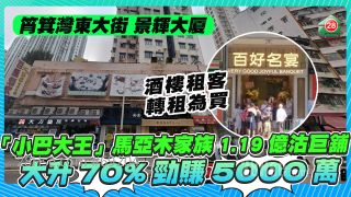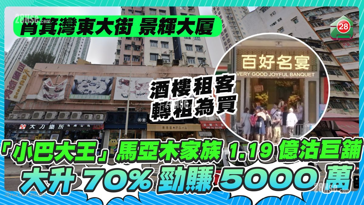 已故「小巴大王」馬亞木家族持續沽貨,近日以1.19億元成功出售旗下筲箕灣東大街巨舖,較18年前的買入價升值逾70%