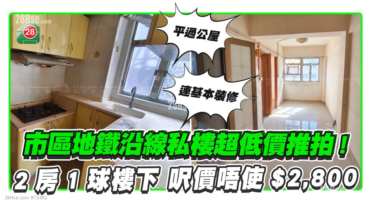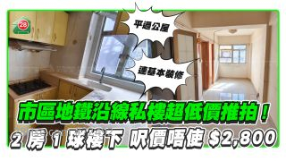 物業市場升溫,銀主趁旺市去貨。近日有市區地鐵沿線私人住宅單位,僅以98萬元低價推拍,呎價約2,737元,平過公屋。