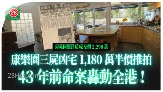大埔老牌豪宅康樂園一幢洋房,將於11月5日經拍賣場推拍,開價僅1,180萬元,大幅低出市價約5成,只因洋房43年前曾發生轟動全港的三屍劫殺案。