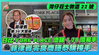 華置旗下位於灣仔的YORK PLACE兩個地舖,近日以合共1.28億元售予菲律賓零食商富豪施恭旗。兩個舖位原由「大劉」劉鑾雄太太、華置行政總裁兼執行董事「甘比」陳凱韻持有。