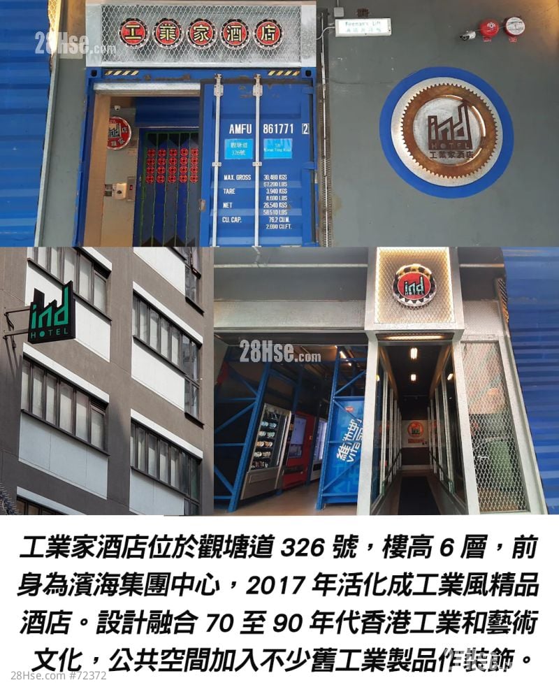 觀塘再現酒店放售潮,位於觀塘道326號,由濱海集團持有的「工業家酒店」現以意向價1.38億元放售,以現時約60間客房計算,平均每間作價約230萬元。市場消息指,物業具改裝為學生宿舍潛力,若申請獲批,可增加至174張床位。