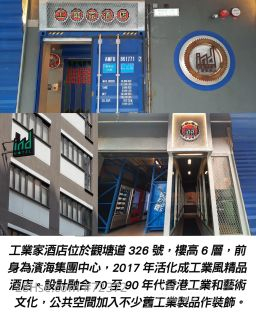 該幢物業為一座6層高的工業風酒店,前身為濱海集團中心,是該集團總部,於2017年活化改建成工業風精品酒店。每層樓面約2,977至3,223平方呎,總樓面約2.16萬平方呎;地面設有商舖及升降機大堂,現時合共提供約60間客房。