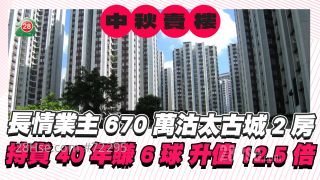 中秋佳節當日,太古城錄得市價成交,一伙2房單位以670萬元沽出,長情業主持貨40年,賬賺6球或逾12倍。