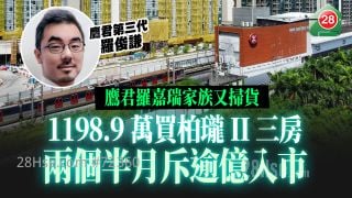 近日再有名人入市。鷹君集團(0041)羅氏家族近期頻頻吸納新盤,最新透過公司名義斥資1,198.9萬元購入錦上路站柏瓏II三房單位;連同今次交易計算,該家族於約兩個半月內合共投放金額逾1.03億元。