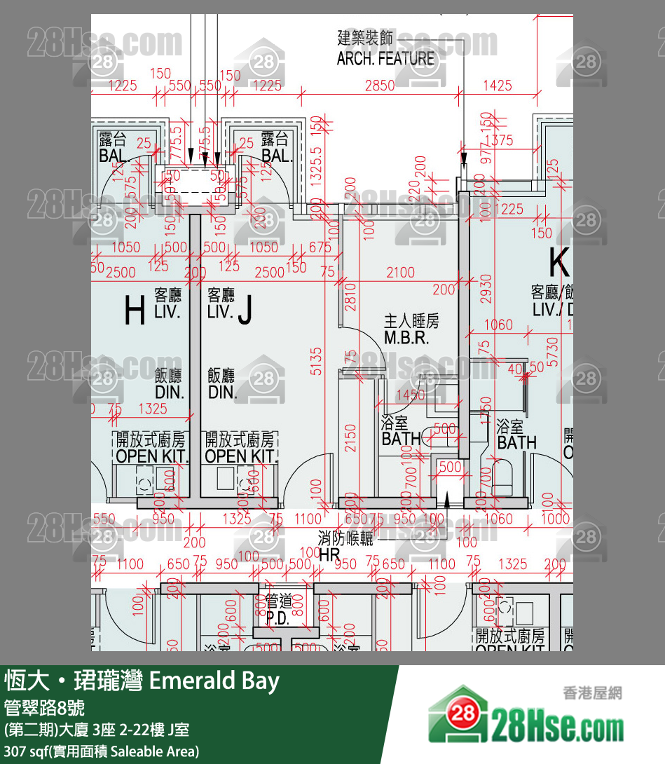 座數及單位: (第二期)大廈 3座 高層 J室