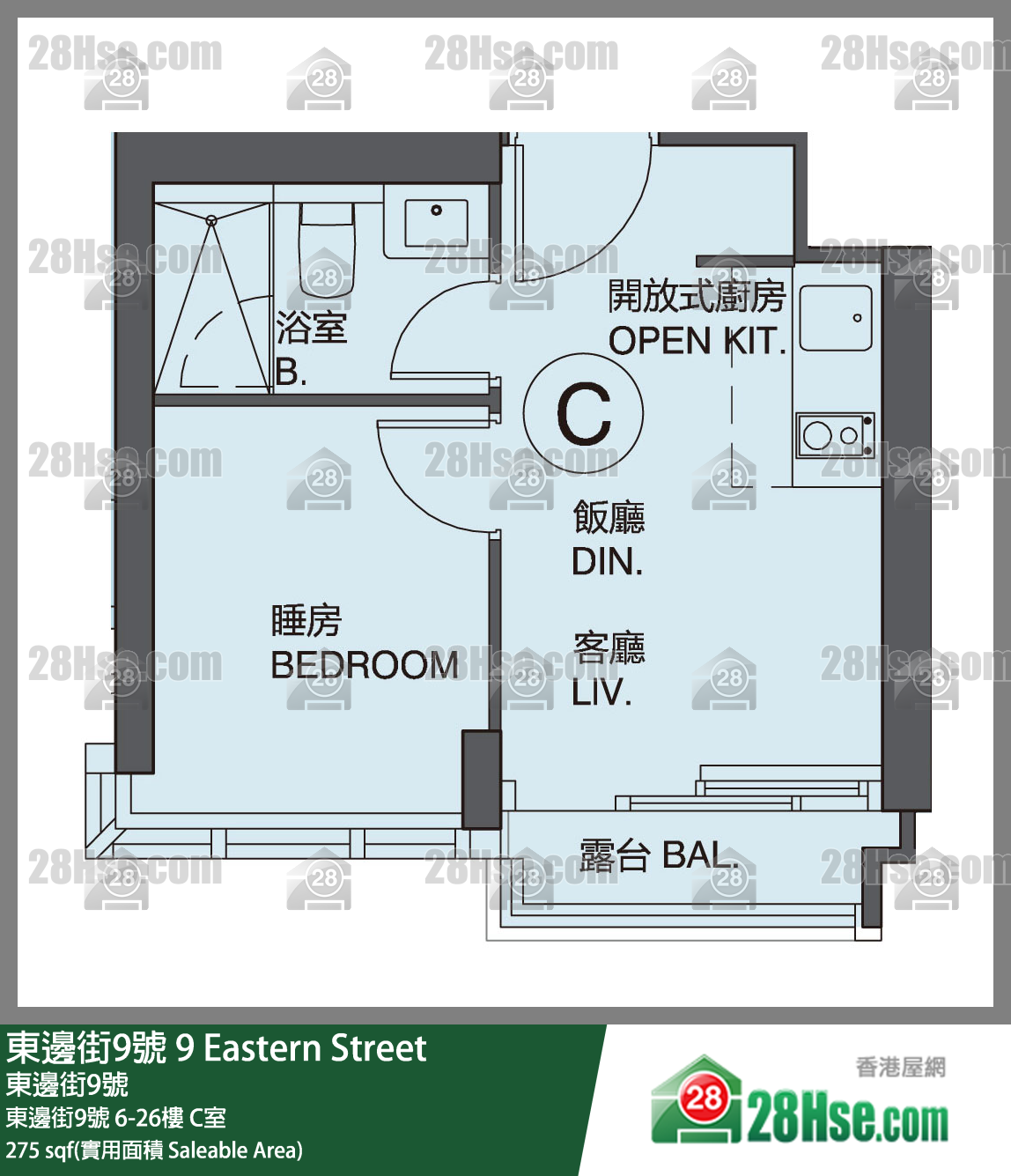 座數及單位: 東邊街9號 中層 C室