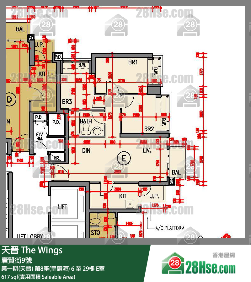 座數及單位: 第一期(天晉) 第8座(皇鑽海) 中層 E室