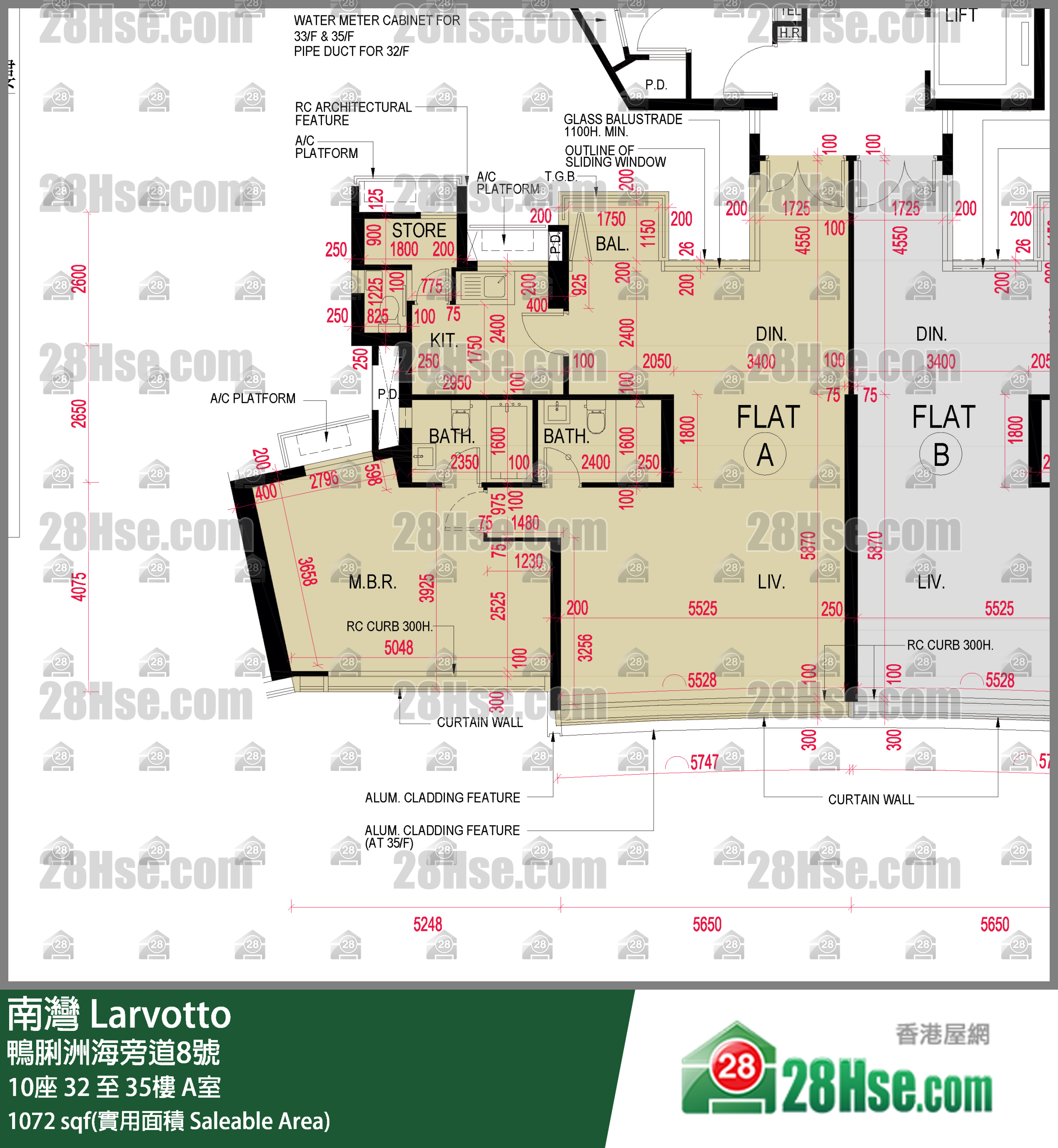 1,072 平方呎